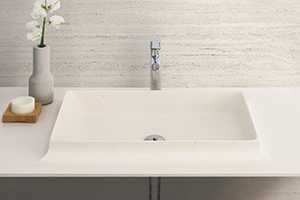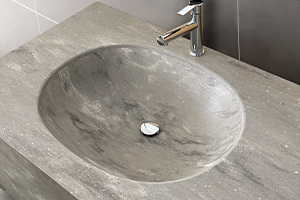大理石柄やテラゾー調などの9柄のバリエーションを持つアクリル系人工大理石製の洗面ボウル