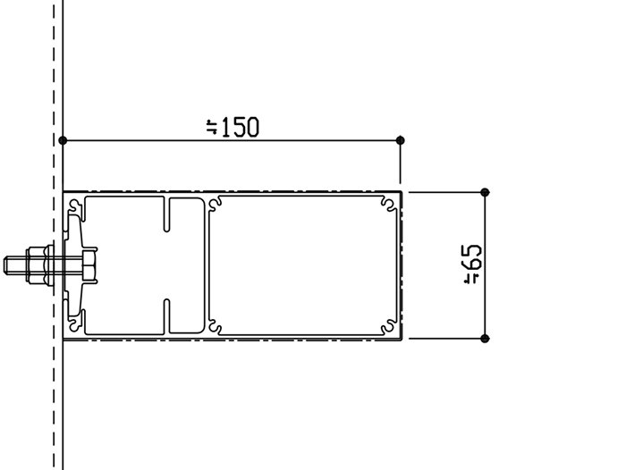専用下地材(インナーベース)を使用し、上下2点固定のみのすっきりとした美しい外観を実現します。天井高さ4,000mm以下(固定金具間3,830mm以下、設計風圧力3,000N/m2以下)まで対応可能です。