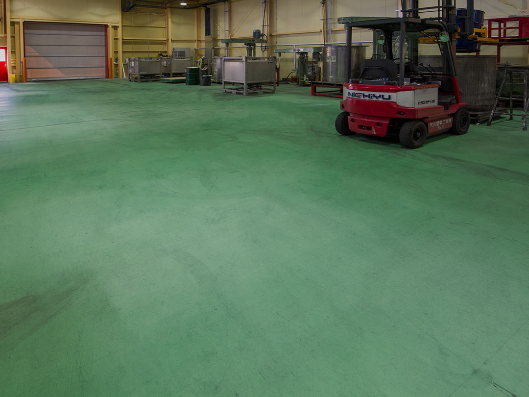 特殊合金骨材を配合し、強靱な床を形成。床面を保護するすぐれた耐衝撃性をもつ極めて強靱な床材です。重量物の衝撃に耐え、ハードな使用にも長期間その性能を維持します。