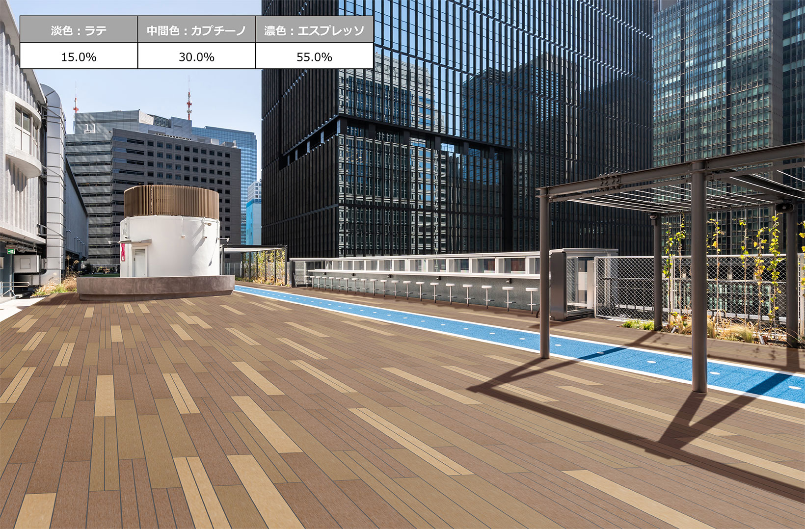 被覆加工廃木・廃プラ複合デッキ材(遮熱+帯電抑制タイプ)アースデッキDWプラス