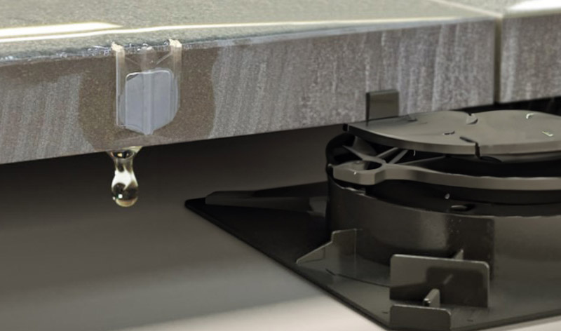 強い衝撃によるセラミックタイルの割れや欠け等での踏み抜き軽減策、強風に対する飛散軽減システム等の安全対策を施したエービーシー商会独自の根太工法に加え、置くだけのセラジャック簡易束工法、超低床用のセラジャックビーンズ置敷工法もご用意しています。タイル表面に溜まる雨水対策部材など充実したシステムで施工場所、使用環境に応じて適切な工法をご提案します。