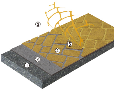 - ●駐車場にご利用できますが、走行量の多い車路やカーブ部分、出入り口部分は経過に伴い摩耗が生じる可能性があります。